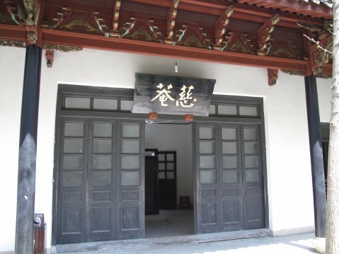 各位游客,我们穿过几条小巷,就可到达“摩诃殿”。摩河殿是蒋家的祖庙,因蒋氏祖宗摩河太公是个佛徒,所以这个祖庙称之为“摩诃殿”。这里面供奉着蒋家祖宗。蒋经国的生母毛福梅也安葬于此,大家看到的吴敬恒所题“先妣毛太君之墓”即是。