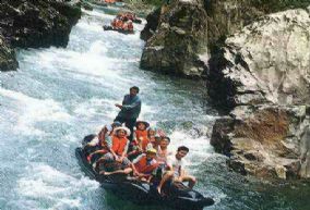 娄江漂流有“小三峡”之美誉,漂流江段长38公里,分上下两个漂流段,上游游程长16公里,下游游程长22公里,险滩18个,漂程2个小时,两岸悬崖绝壁,峡谷幽深,树木葱茏,滩多浪急,惊险刺激。娄江漂流是自然与人文的结合,可观赏众多石峰、石柱、石象、石硅,还可眺望历史名胜古迹唐朝兴国寺、宋代索口寨、明朝九溪卫以及中国近代史南北大侠杜心武故居。
